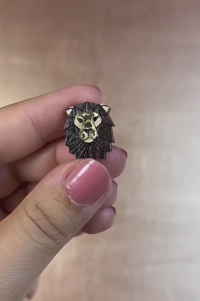Bold, stylish, and eco-friendly, the handcrafted Lion Pin is a statement piece for those who value unique design and sustainability. Perfect for both men and women, this lapel pin features a polygonal geometric lion head, marrying modern aesthetics with timeless craftsmanship. Made from acrylic glass and recycled exotic hardwood sourced from local guitar production, the Lion Pin brings stunning artistry and eco-conscious innovation to your accessory collection.