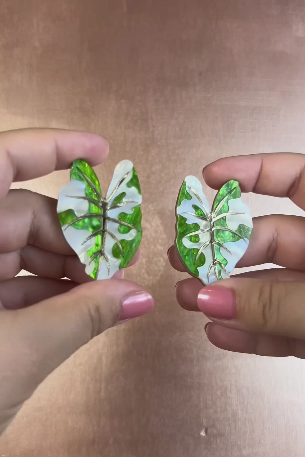 Make a statement with Alocasia Earrings - bold, hand-crafted, lightweight jewelry inspired by the beauty of Alocasia variegata leaves.