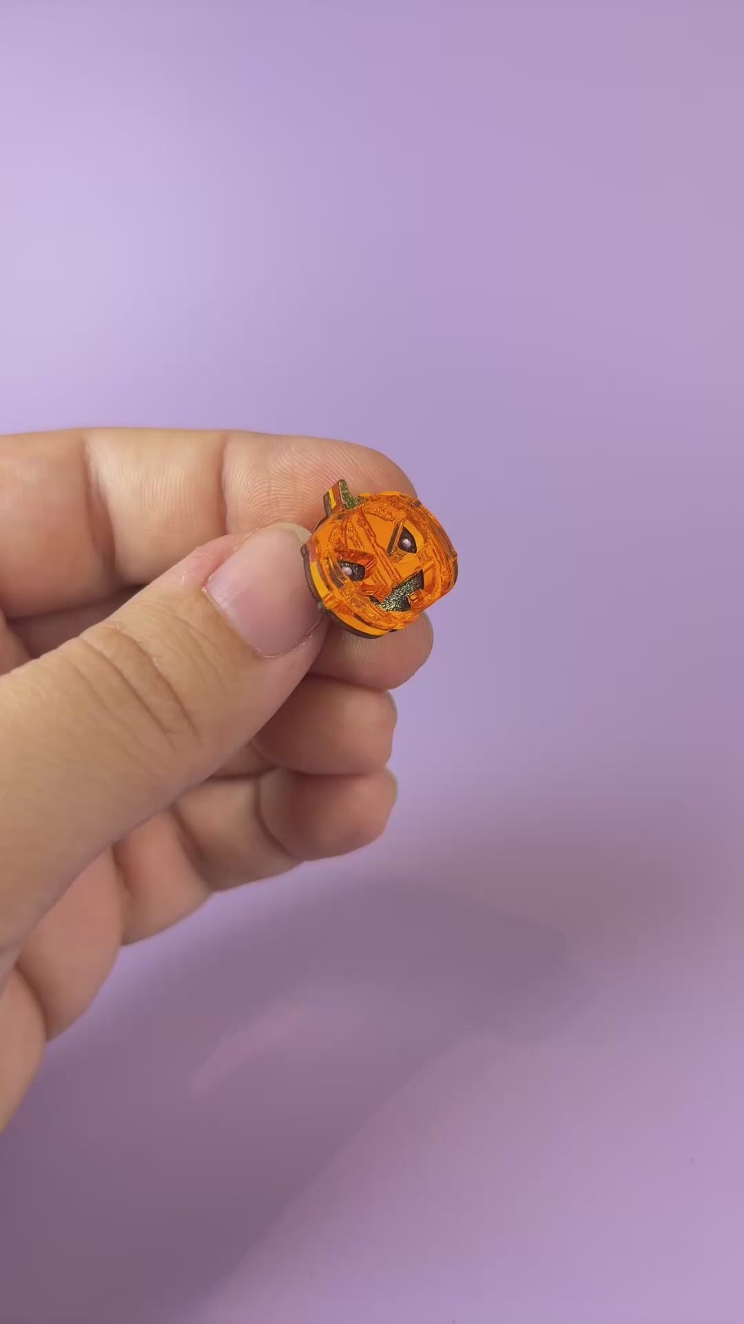 Crafted from premium acrylic glass and meticulously laser-cut in our small family studio, each pin weighs practically nothing yet delivers maximum impact. You'll forget you're wearing it until someone compliments your impeccable taste. The secure clasp means no more worrying about losing your favorite accessory during busy days, while the durable materials ensure this little pumpkin will bring joy to many Halloween seasons ahead. Our hand-painting process creates subtle variations that make your pin truly one-of-a-kind—because mass-produced just isn't our style.