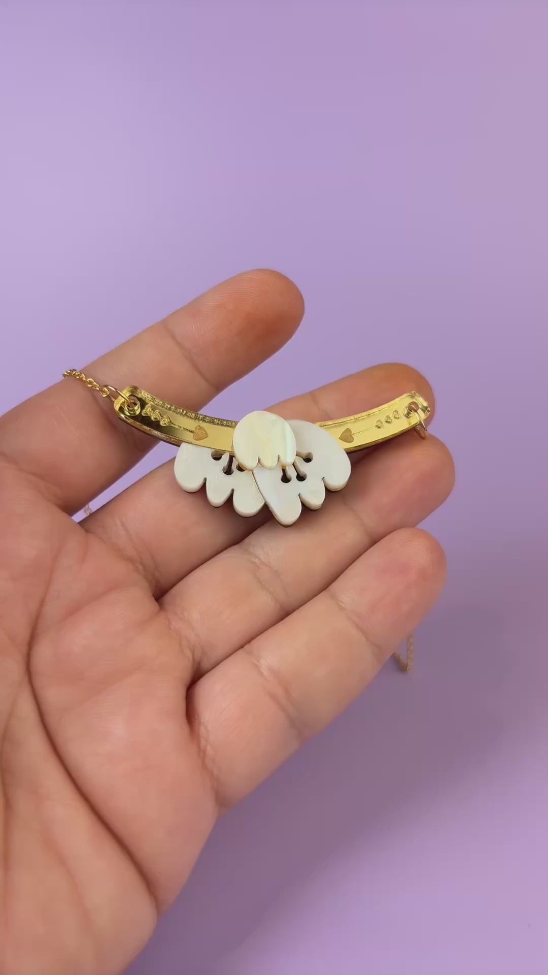 Jedes Element der Romantische Tulpenkette ist ein Hingucker. Die perlmuttartigen Akzente der Tulpenblätter heben sich wunderschön vom polierten Gold ab und bilden einen markanten Kontrast. Ihr sanfter, romantischer Look passt mühelos zu einer Vielzahl von Stilen – von minimalistischen Kleidern bis hin zu auffälligen, modernen Ensembles.