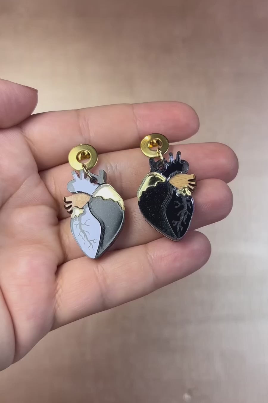 Otočte pohľady s náušnicami v tvare anatomického srdca – výraznými, ručne vyrobenými doplnkami, ktoré kombinujú gotický štýl a lekársku precíznosť v ľahkom a antialergénnom prevedení.